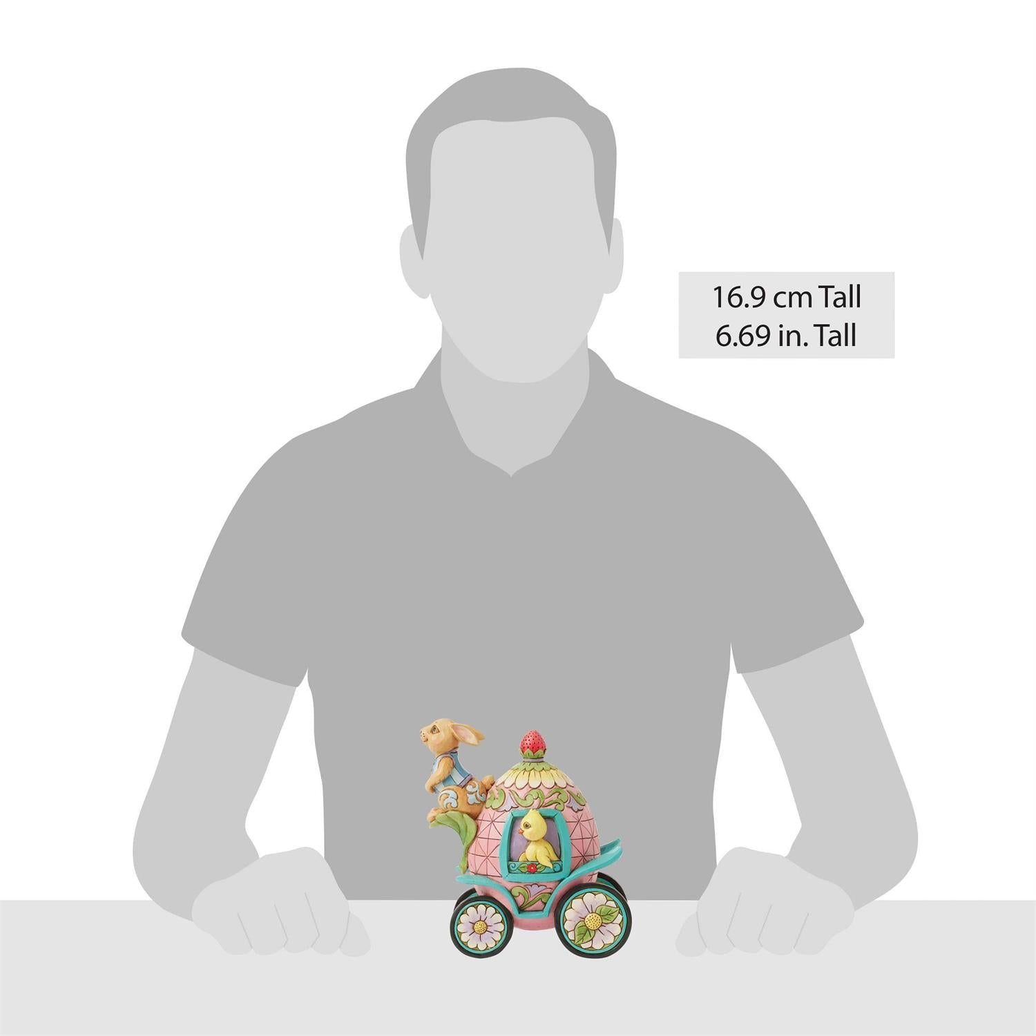 A 2nd annual cdesign joins the Easter Parade series. Bringing Easter wishes a bunny coachman on his box seat guides his chick passenger your way. Jim Shore's masterful use of color brings the handcrafted piece to life, hand-painted in exquisite detail