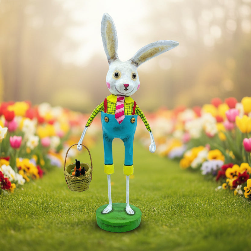 Johnnie Lightfoot hops into spring with Lori Mitchell's signature whimsy and charm. This collectible Easter character brings nostalgic fun to your seasonal displays and makes a delightful gift for holiday enthusiasts.