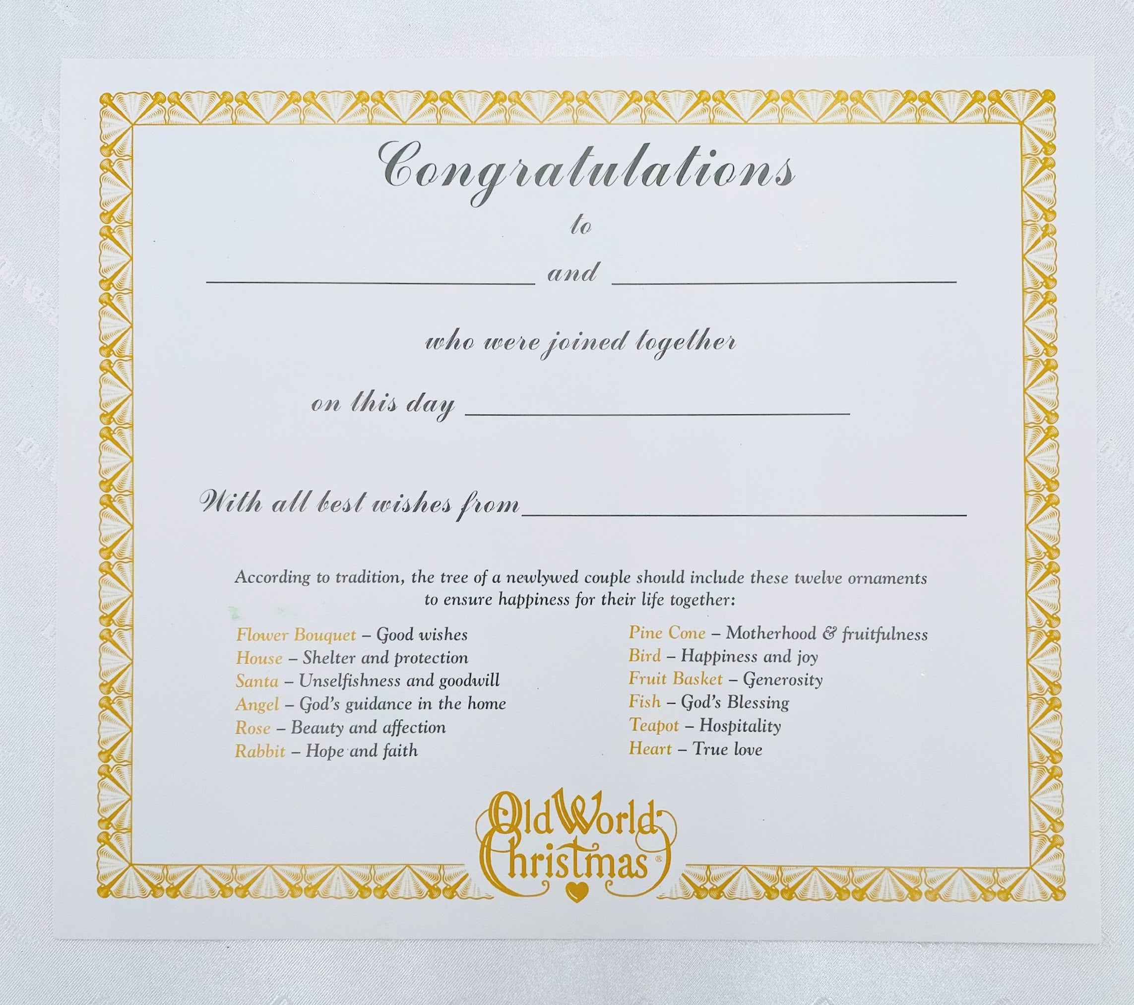 According to tradition, the newlywed couple’s Christmas tree should include the following 12 ornaments to ensure a happy life together: